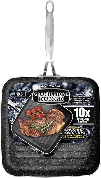 Amazon Com Granitestone 2594 Grill Pan 10 25 Nonstick And Scratchproof Stovetop Cookware Pfoa Free Oven Safe Dish Washer Safe 10x Extra Long Lasting As Seen On Tv Kitchen Dining