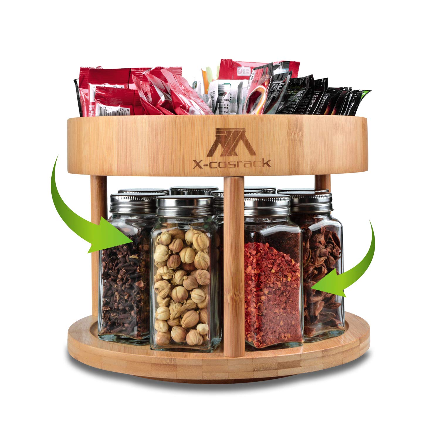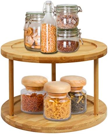 X-cosrack 2-Tier Lazy Susan Divided Turntable 10inch Bamboo Spinning Spice Rack Holder Kitchen Cabinet Counter Top Organizer Storage Container Rotating Tray 6 DIY Partition Board 360 Degree Homeries 2-Tier Lazy Susan Turntable - Tiered Rotating Kitchen Spice Organizer for Cabinets Pantry Bathroom Refrigerator - Non-Skid Surface Rimmed Edge. 47 out of 5 stars 526 ratings.
