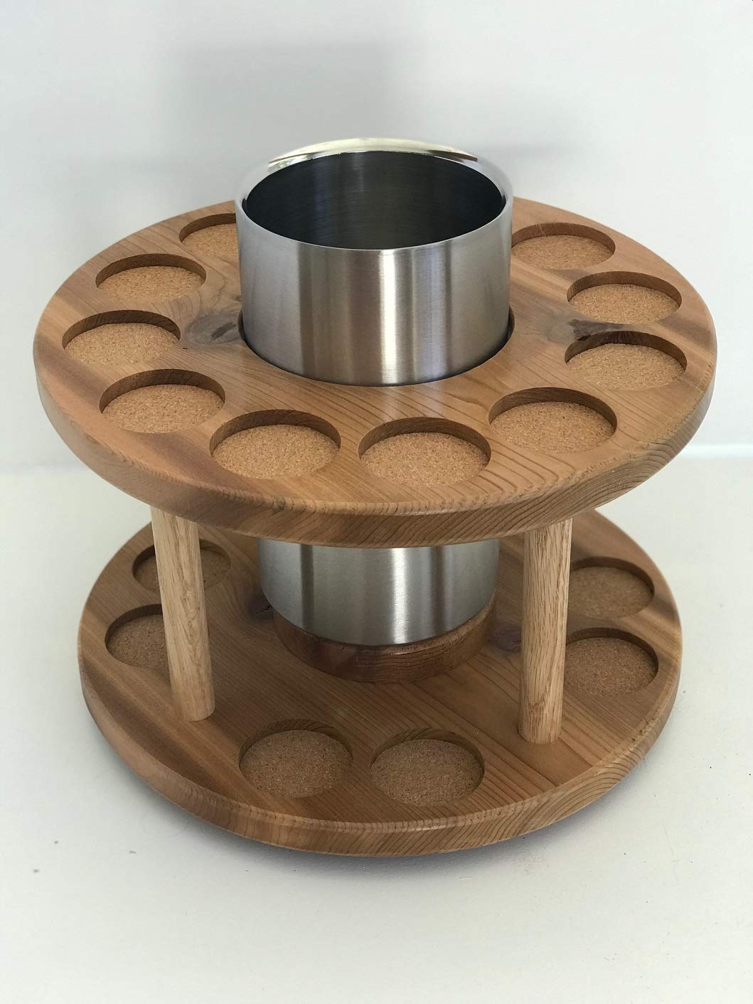 2-Tier Lazy Susan Divided Turntable 10Inch Bamboo Spinning Spice Rack Holder. All 16 2 38 round recessed cork lined cut outs for your favorite spices and yes it also is a Lazy SusanWhen you talk about being organized functional and beautiful your Spice Rack completes the bill. Sagler 2 Tier lazy susan turntable 360-degree lazy susan organizer use for a spice organizer or kitchen cabinet organizers stain-resistant Revolving 360 Degree Storage cabinets and pantry storage 360-degree Turntable Turntables are outfitted with a Non-Skid liner ensuring that items stay in place while spinning.