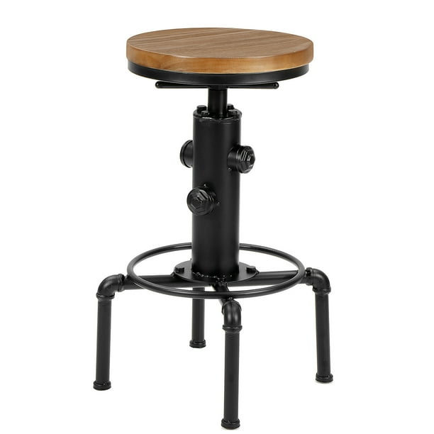 Industrial Adjustable Height Barstool Metal Rustic Bar Stool Fire Hydrant Pattern Vintage Stool Round Wooden Top Walmart Com Walmart Com