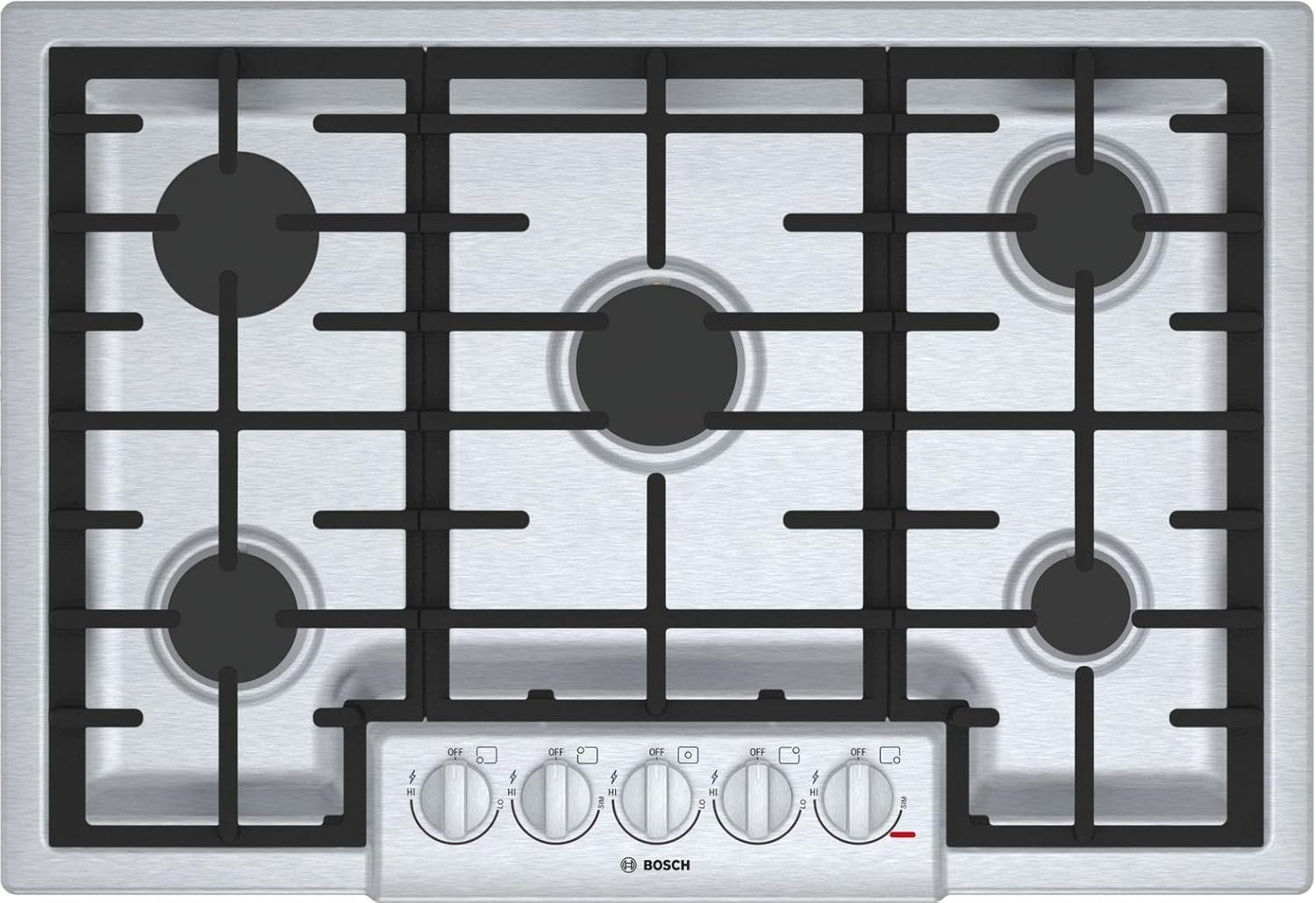 This Bosch 30-inch gas slide-in range features a warming drawer to simplify food reheating and multiple cooking modes for faster processing. This high-quality Bosch 800 series 30 gas cooktop has all the versatility and cooking power you want with the sensitive precision controls you need. Watch out this seller is displaying an image of a kitchen aid 5 burner gas cooktop and labeling it a 5 burner Bosch but its actually a very cheap model 4 burner Bosch.
