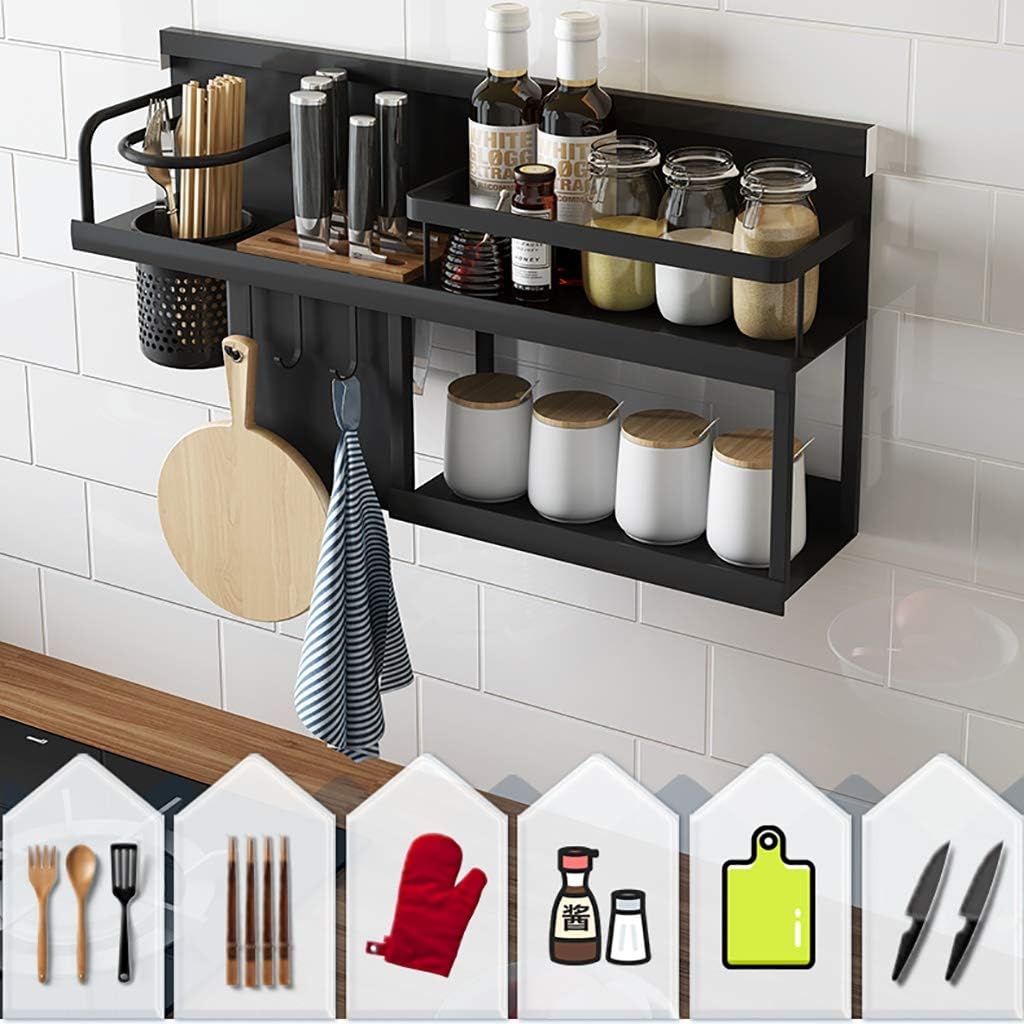 Amazon Com 2 Tier Spice Rack Organizer Kitchen Wall Mount Seasoning Jar Storage Shelf With Knife Utensil Holders Hooks Higher Rail To Protect Cans Bottles From Falling Out Black Rose Gold Kitchen