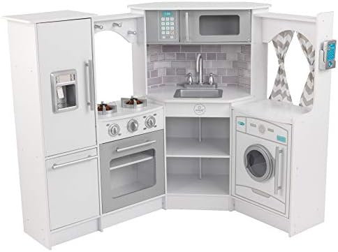 We love the KidKraft Ultimate Corner Play Kitchen. Kidkraft ultimate corner wooden play kitchen with lights sounds play phone and curtains white gift for ages 3 47 out of 5 stars 9149 2 offers from 56299 the kidkraft play kitchen with lights sounds is a modern approach to playtime.