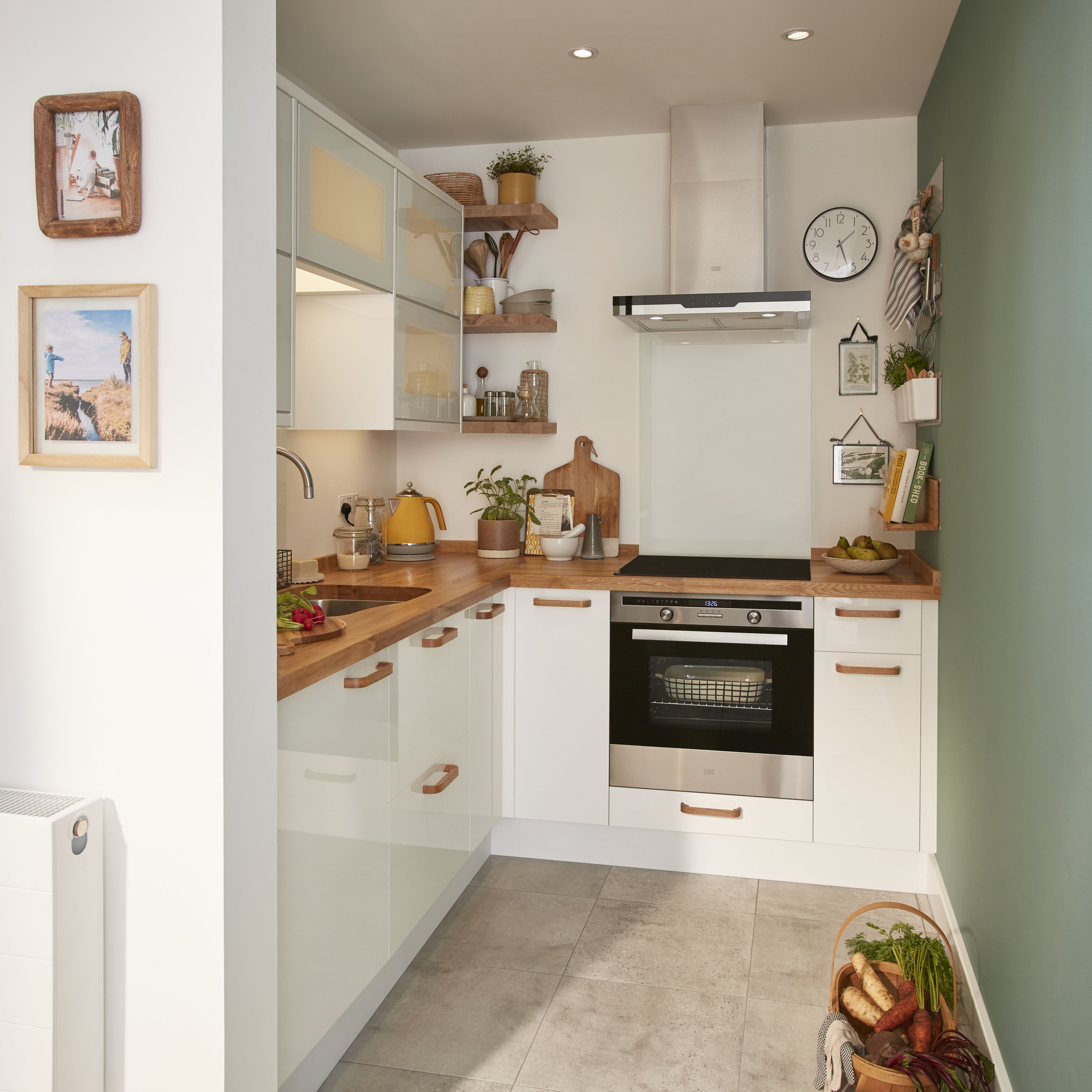 B Q Cooke Lewis Raffello High Gloss White Crisp White Paired With Solid Wood Creates Light And White Gloss Kitchen Kitchen Design Contemporary Kitchen Diy